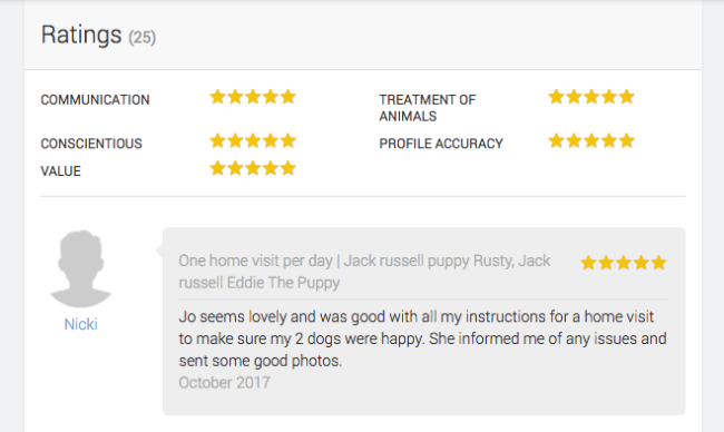 Pawshake has a feedback service with gold star ratings that appear at the top of your profile and in search. There's no better way to show that you're a trusted pet sitter! So once you secure that first job, make sure you ask the pet owners to take a minute to give you a sparkling review at the end.
